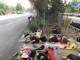 济南纬一路一轿车顶上护栏,非机动车道被堵
