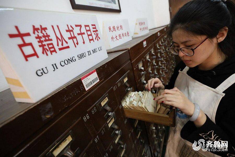 2018年3月13日,济南。夏天妮在图书馆查找古书目录。
