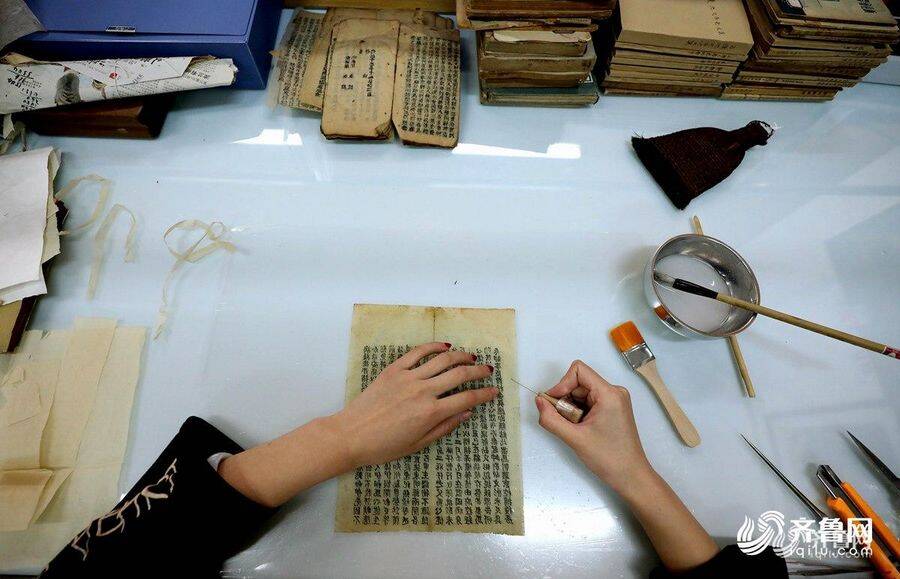 夏天妮是山东师范大学图书馆的一名古籍修复员,2016年开始工作至今已“治愈”古书300多本。她说,古籍修复是一个古老的行业,一名技术精湛的修复师往往需要十几年的锤炼,许多工艺没有办法用现代科技代替。她希望用自己的双手继承这门手艺,用更好的技术把古籍修复好。