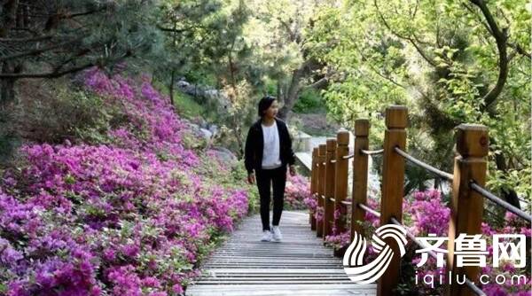 微风轻拂,阳光明媚,眼下正是赏花好时节,威海市环翠楼公园的杜鹃花竞相开放。